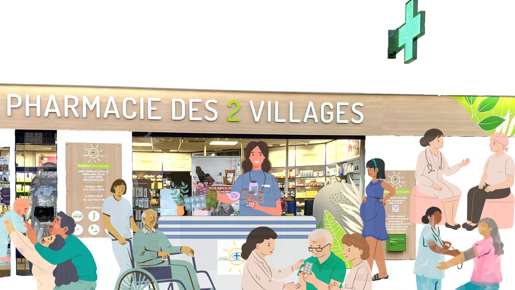 L’équipe de la Pharmacie des 2 Villages reste bien sûr disponible à l’officine pour vos conseils 💚